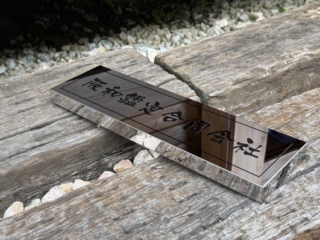 阪和鑑定合同会社様のご依頼で、鏡面仕上げの腐食銘板を製作しました。