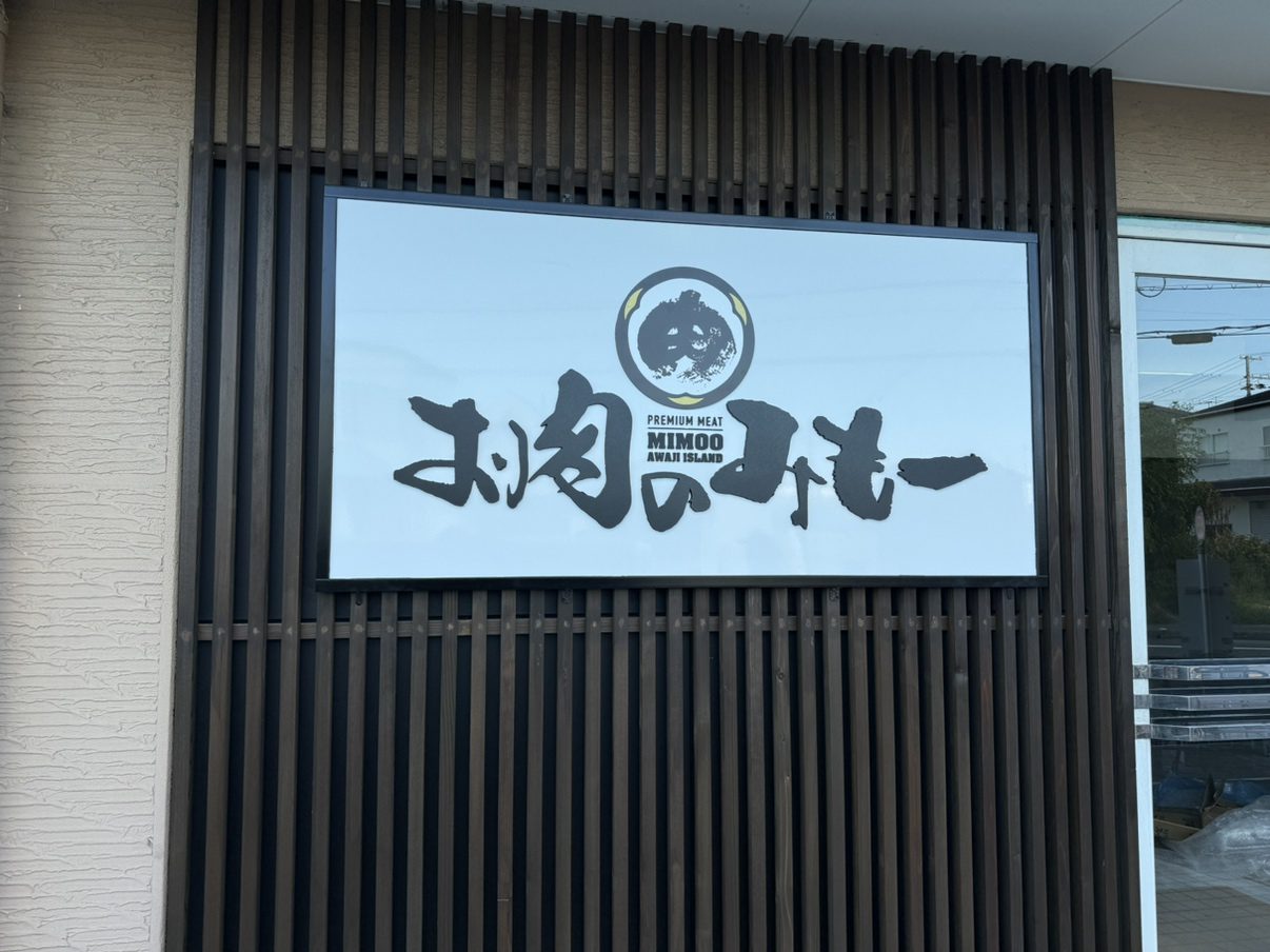 淡路市志筑にオープン予定のお肉屋さん「お肉のみもー」様の看板を製作させていただきました。